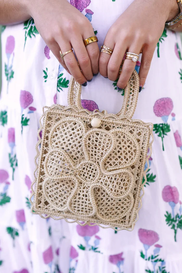 Handwoven from natural iraca palm and crafted by artisans in Colombia, the Bougainvillea Mini features an intricate floral design with structured top handles and a lightweight feel. A timeless warm-weather accessory designed for effortless everyday styling.